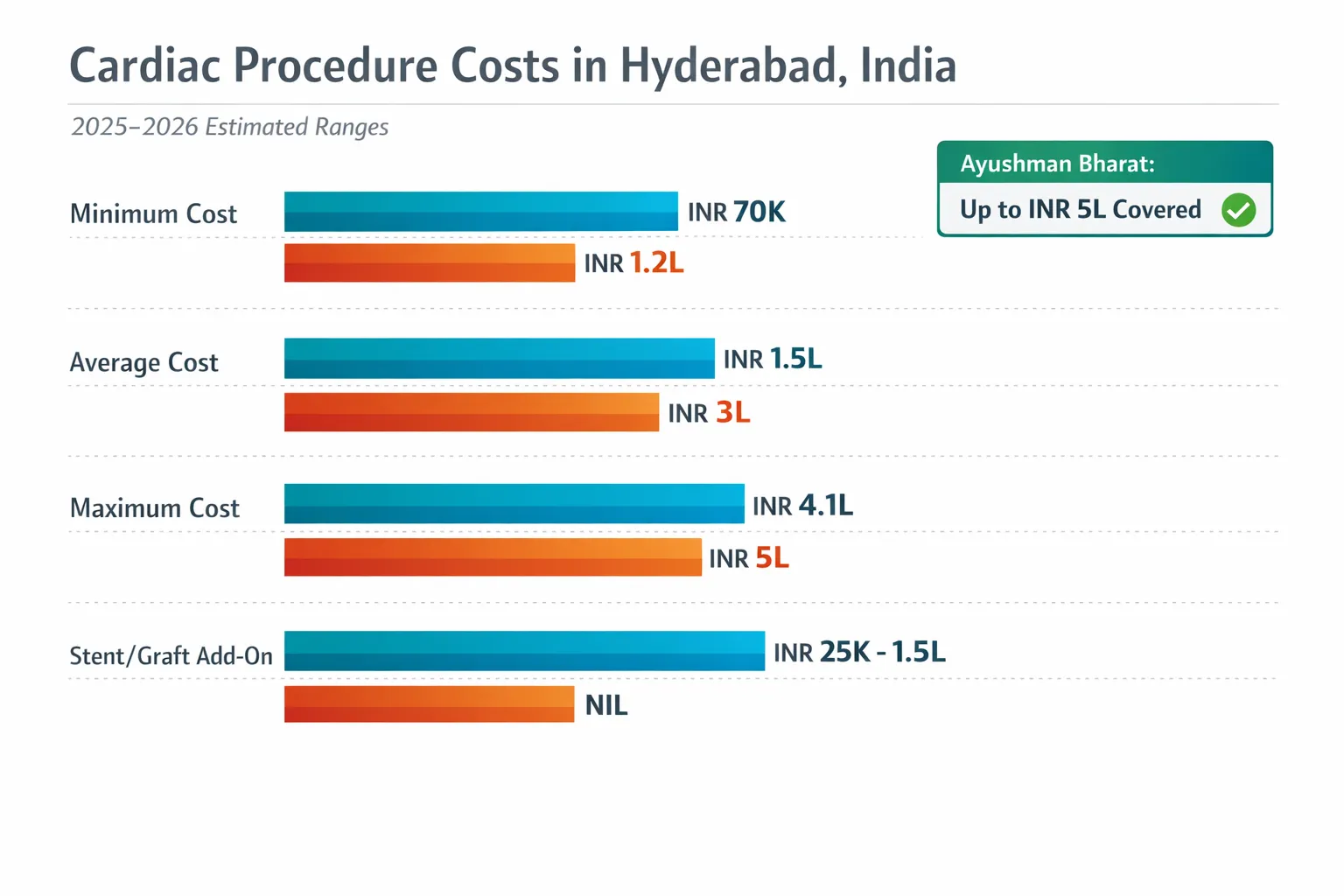 Let us talk numbers. Cost is a real concern for families, and the range in Hyderabad varies depending on the hospital, surgeon, stent type, number of grafts, and room category.