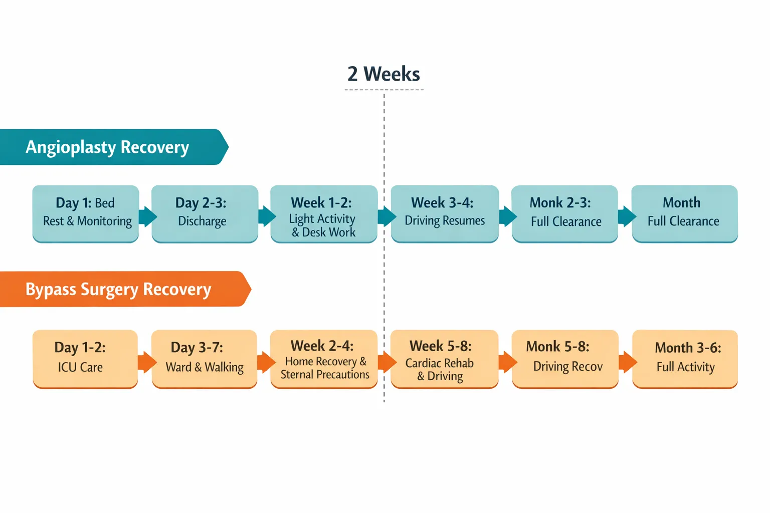 • Month 2 to 3: Follow-up stress test. Cardiac rehabilitation if advised. Full activity clearance from your cardiologist.