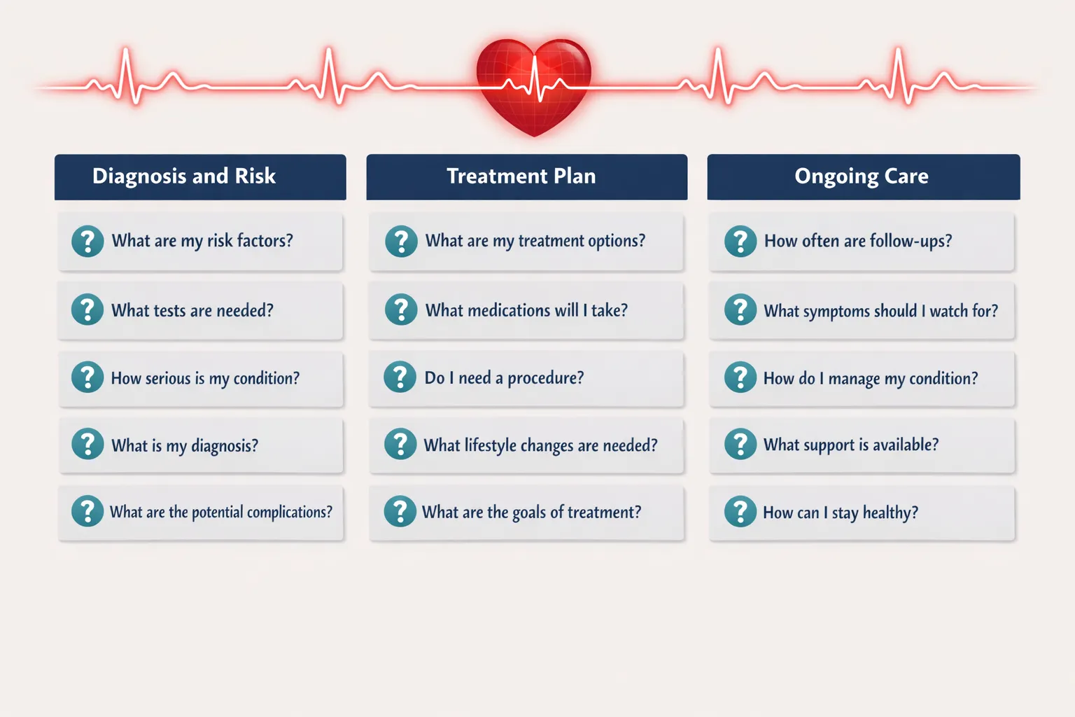 1. What exactly is wrong with my heart, and how serious is it? Ask your doctor to explain in plain language. If they use medical terms, ask them to translate. Understanding your own condition is not optional.
